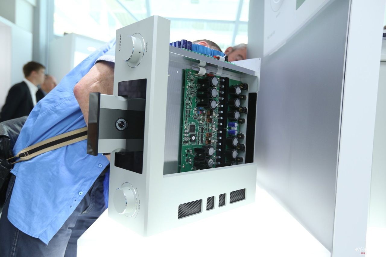 Первое — это ограниченная серия гибридных моноблоков M-40 HV. Выпустят только 40 комплектов, и доступны они будут исключительно в юбилейный год. M-40 относятся к верхней линейке High Voltage, соответственно, в них работает транзисторный оконечник в режиме высокого напряжения, а в предварительной секции установлена пара ламп 6SN7. Мощность одной башни M-40 HV достигает 1 000 Ватт при 4 Ом или 550 Вт при 8 Ом. Также предусмотрен особый режим HC (High Current), когда усилитель выдает до 60 Вт в чистом классе А.